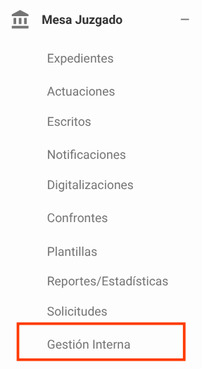 - Diríjase al menú Mesa Juzgado / Gestión Interna.