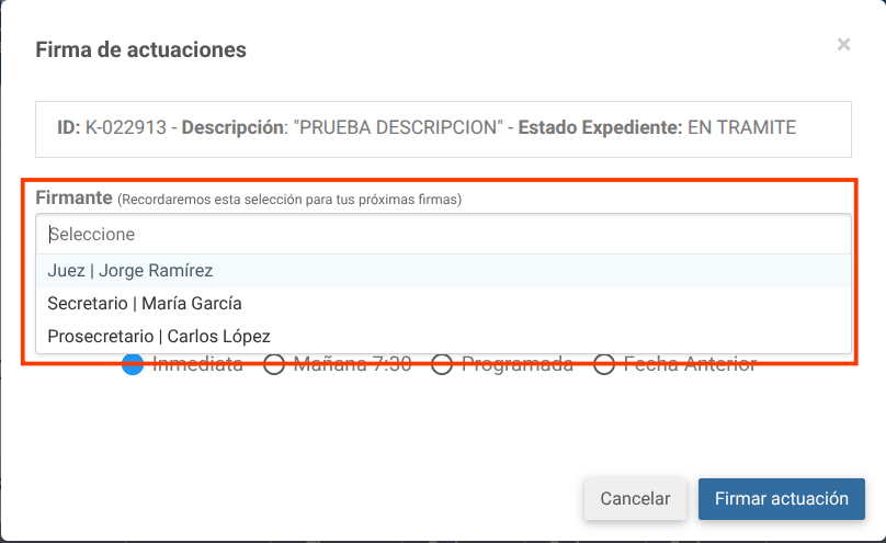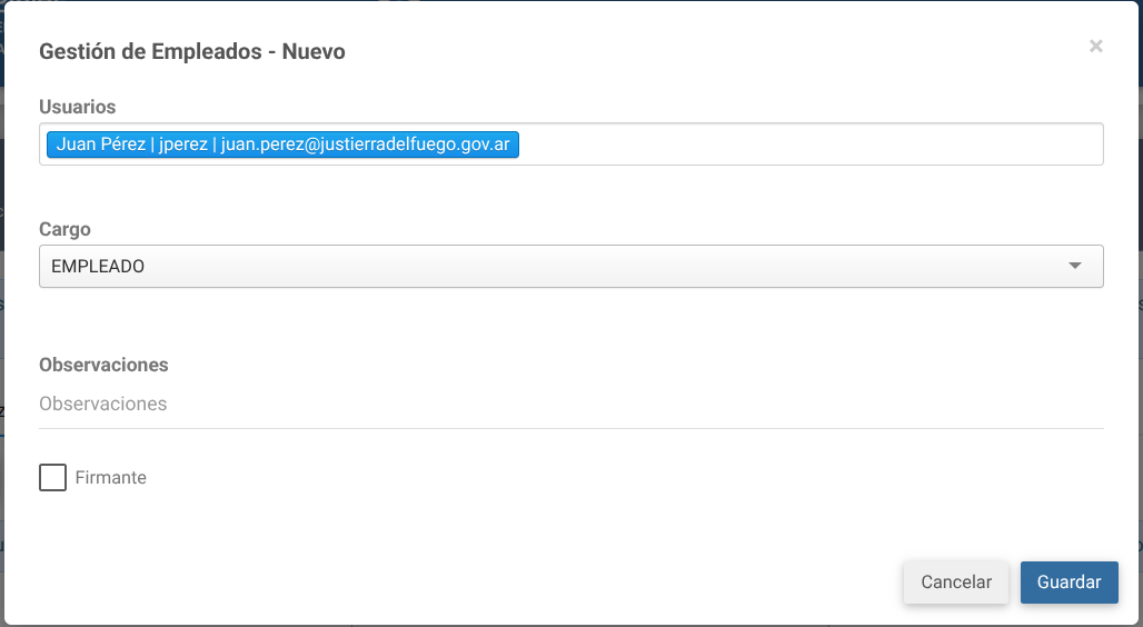 - Firmante: indica si el usuario puede firmar actuaciones.