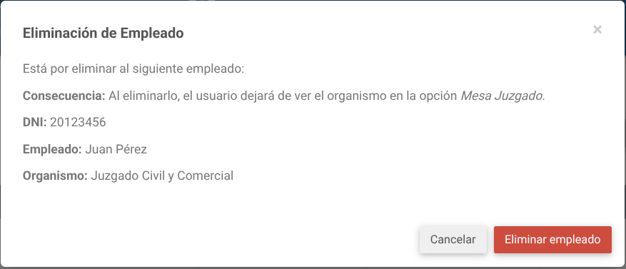 - Administrar los empleados del juzgado (altas, ediciones y bajas).