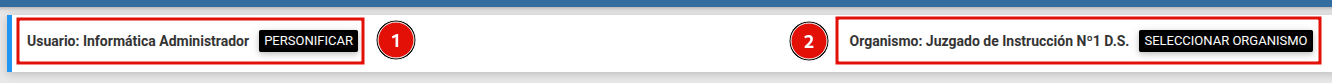 Cambio de Contexto: Una vez seleccionado un nuevo organismo, el sistema refresca la interfaz. Este cambio es global para el módulo de Mesa Juzgado, actualizando: