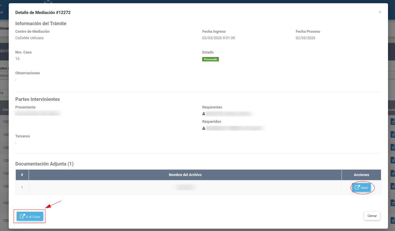 Además, en aquellos supuestos en que el trámite ya haya sido procesado, se encontrará habilitado un acceso rápido al Caso de Mediación generado a partir de dicha solicitud.
